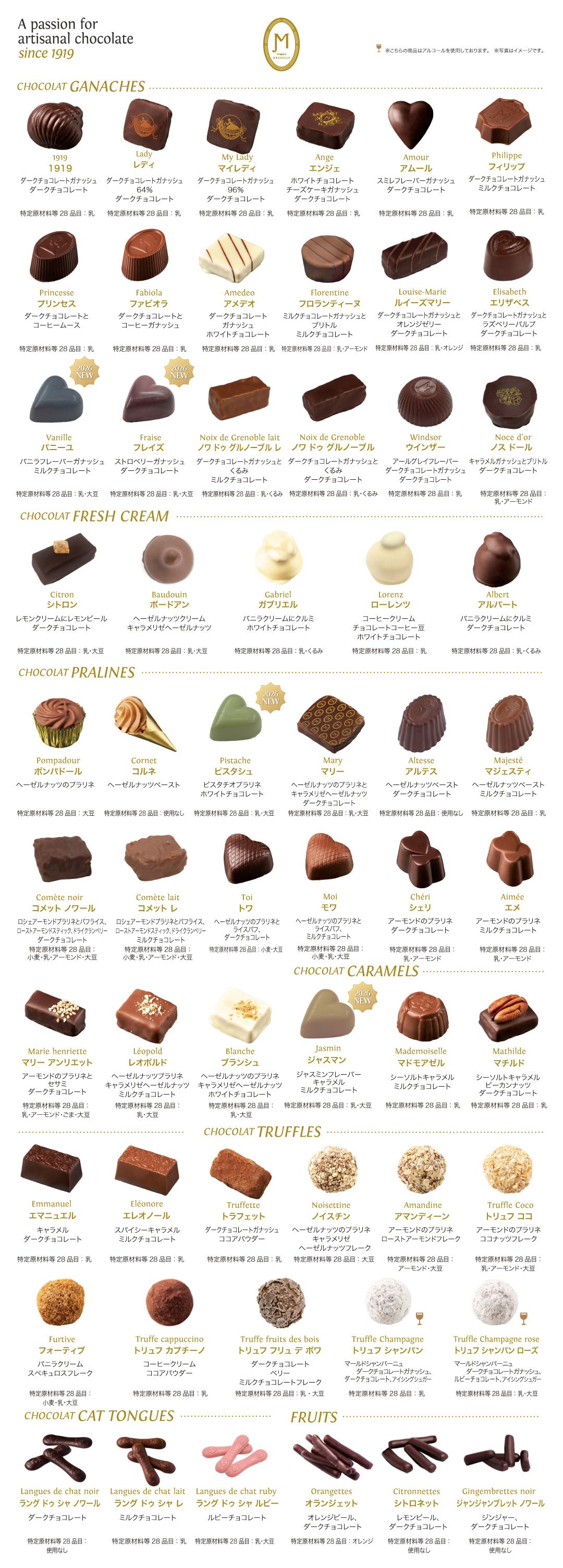 ※チョコレートは季節・時期によって販売していない種類があります。