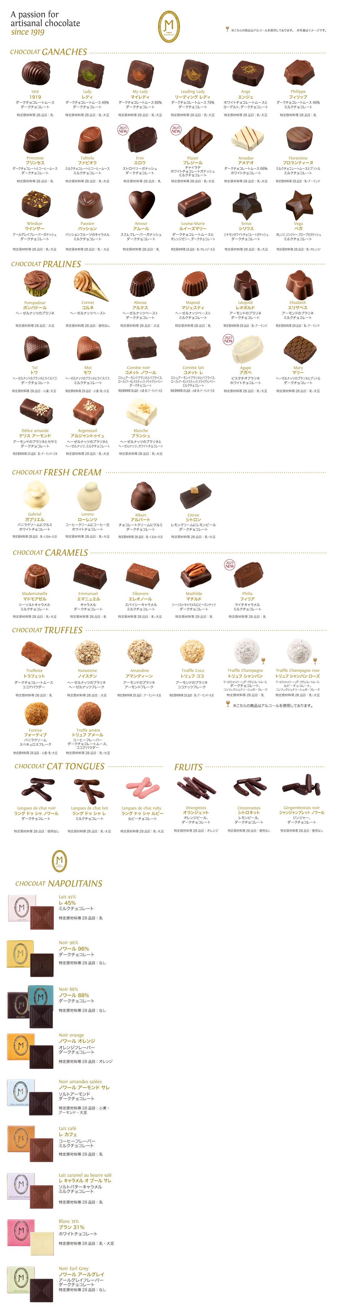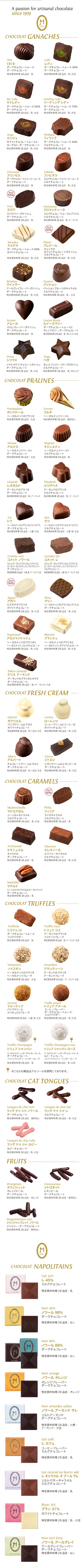 ※チョコレートは季節・時期によって販売していない種類があります。